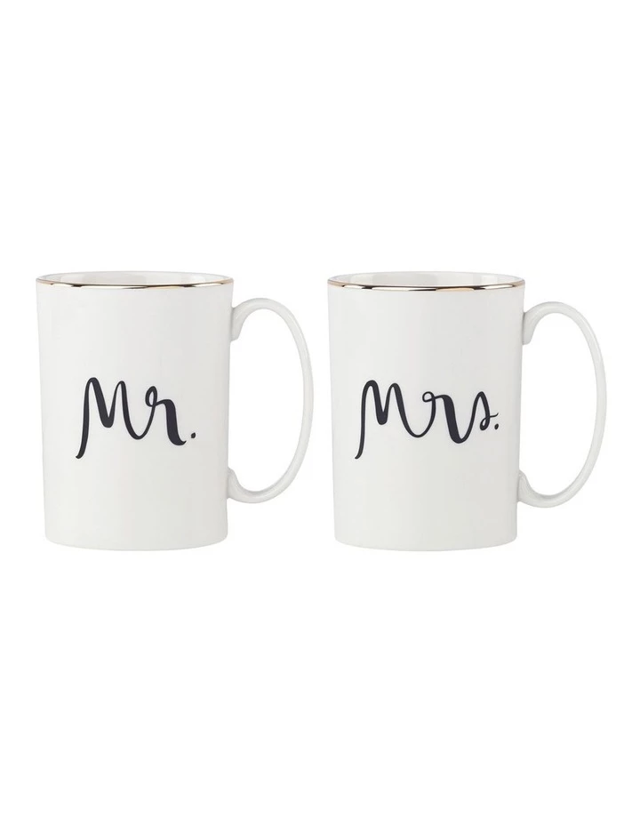 Designed with newlyweds in mind, Bridal Party includes trompe loeil-inspired illustrations and calligraphed phrases for an uplifting, whimsical look. Gold trims and accents provide pop in an otherwise traditional black and white palette. Newlyweds are sure to love this mug pair featuring ‘Mr’ and ‘Mrs’ which cleverly captures the sentiment celebrating the union between two people.