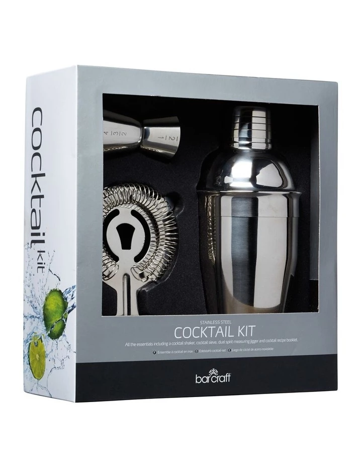 This BarCraft Deluxe Cocktail Set contains everything you need to get started making delicious cocktails. All items have a stylish stainless steel mirror polished finish, making an ideal gift. The set includes all cocktail making essential- a cocktail shaker, a sieve, a dual spirit measuring jigger and a cocktail recipe booklet to get you started.