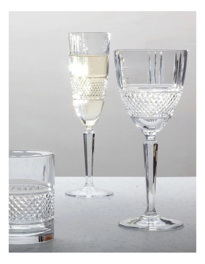 The Maxwell & Williams Verona range features an embossed diamond-cut band enhancing the Art Deco-inspired design.