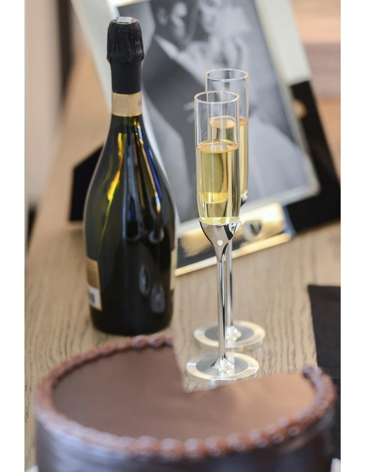 The Vera Love Always Toasting Flutes by Vera Wang offer elegance, romance, and timeless style. Perfect as gifts for newlyweds, anniversaries, weddings and more, these flutes are a stunning choice for toasting to special moments. Featuring a beautiful folded silver heart motif and presented in a Vera Love Always gift box. The Vera Love Always collection features a lovely Folded Heart that will be the next Romantic Bridal icon and inspired by a pair of heart earrings belonging to one of Vera’s daughters.