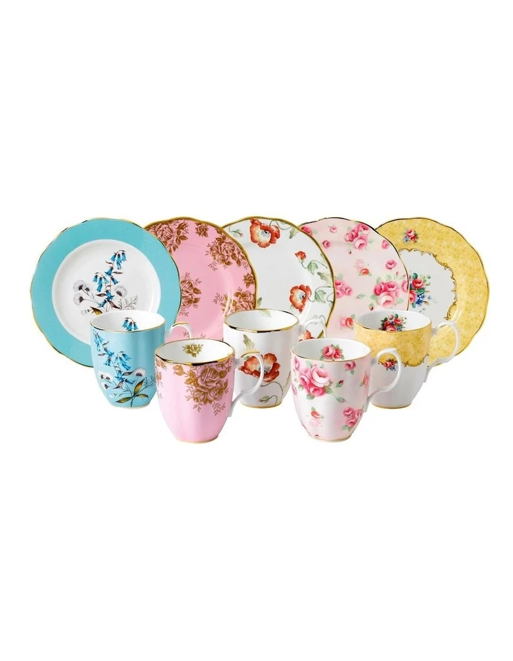 Royal Albert has a wealth of designs from each decade and five different designs form the Mug and 20cm Plate Set 1950-1990, a striking collection derived from its rich archive of beautiful floral patterns. Crafted in fine bone china, each elegant mug and plate is finished with 22 carat gold reflecting an evolution in tableware fashion. Each piece in this stunning set is backstamped and presented in a decorative, signature pink gift box commemorating the 100 years collection and making a wonderful gift for family or friends to treasure or a special treat for oneself.