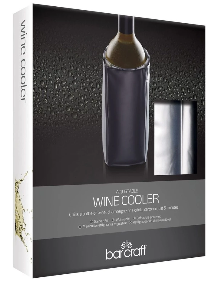 This wine cooler sleeve from BarCraft is highly versatile and can be used on bottles and drinks of most sizes. Using adjustable Velcro fastenings the sleeve simply wraps around to fit any type and size of bottle, can, or carton to chill it in under five minutes. Folds flat for portability and easy storage.