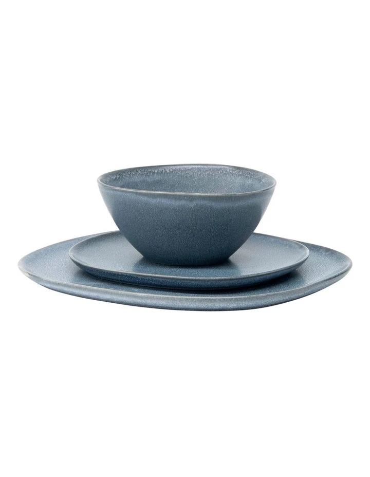 For a dramatic twist on your traditional dinnerware, look to this twelve-piece ARCH dinner set by Salt&Pepper. With a focus on angular shapes and reactive glazing, this earthy stoneware set in blue includes 4 x dinner plates, 4 x side plates and 4 x bowls.