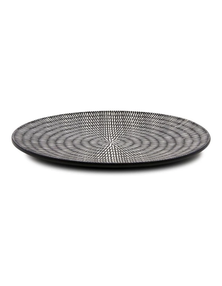 Shibori, earthy colours and eclectic forms and patterns combine in this screen-printed OSAKA round platter by Salt&Pepper.