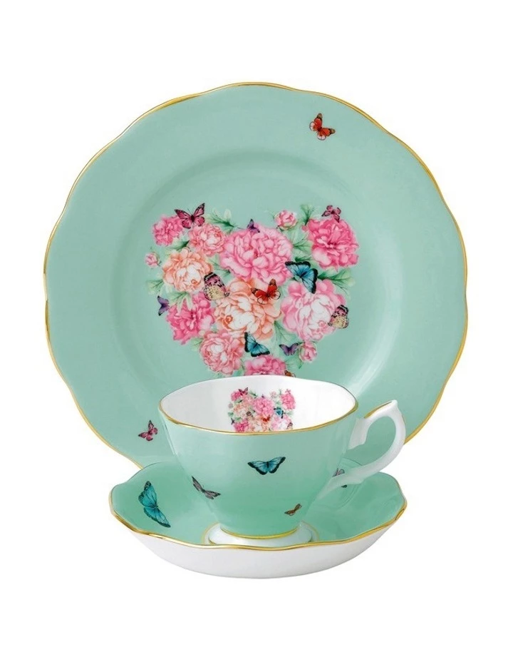 A soft green design featuring the signature peonies and butterflies, to form a heart shaped posy in the centre of the plate and inside the teacup, an adorable detail that Miranda loves. This 3 Piece Set includes a Teacup, Saucer and 20cm Plate.