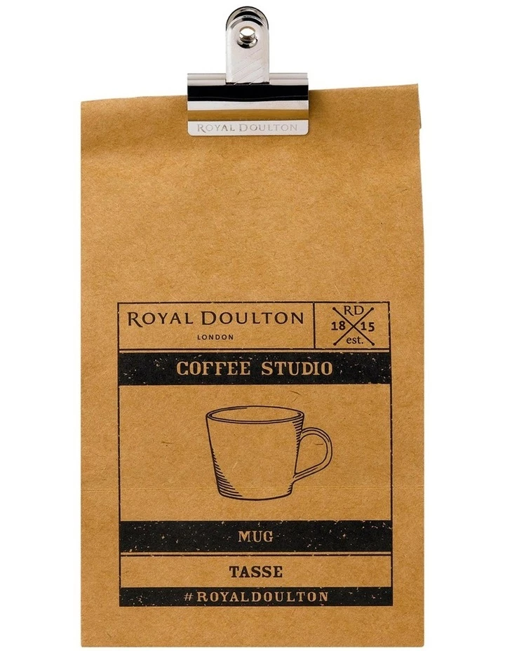 Discover your inner barista with Royal Doulton Coffee Studio. Whether your prefer a classic cappuccino, an energising shot of espresso or the rich taste of a slow brew coffee, this collection has been designed to meet all your home brewing needs. Bring the aroma and taste of your favourite coffee hangout to your home with the Coffee Studio Grey Mug Small 270ml. Featuring a contemporary dipped grey glaze, this item comes in a stylish folded bad finished with a bulldog clip for a great gift. Made from: Porcelain. Decoration Method: Hand applied impress mark and double dipped satin glaze. Height: 7.6cm. Width: 9cm. Capacity: 270ml. Care: Dishwasher and Microwave safe. Packaging: Folding carton coffee style bag.