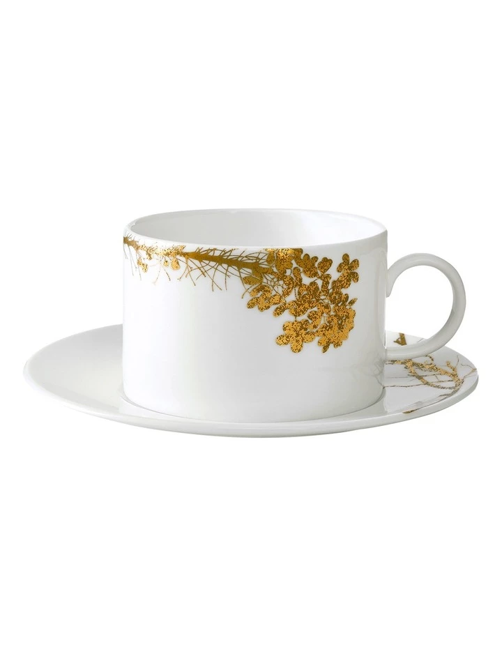 The Vera Wang Jardin Teacup & Saucer will bring shimmering luxe to your favourite tea, with a beautiful design inspired by Veras love for art and her own botanical illustrations. Vera Jardin by Wedgwood is directly influenced by Veras personal collection of Oxalis pen and ink drawing art, as well as her love of nature. Veras recent visit to the temples of West Lake in Hangzhou, China is the scene for the Chinese story Butterfly Lovers which is the equivalent of Romeo and Juliet. It was here that Vera found inspiration for Jardin with the lush surroundings, diverse arborvitae and fragrant botanicals. These botanical illustrations arre Veras inspiration for the Vera Jardin collection. Shimmering, warm floral gold and bronze patterns on plates, mugs and bowls infuse positive energy in the home and at the table; perfect tableware for hosting dinner parties for family and friends. All items are presented in stylish signature Vera Wang Wedgwood gift boxes.