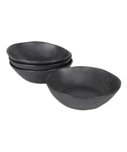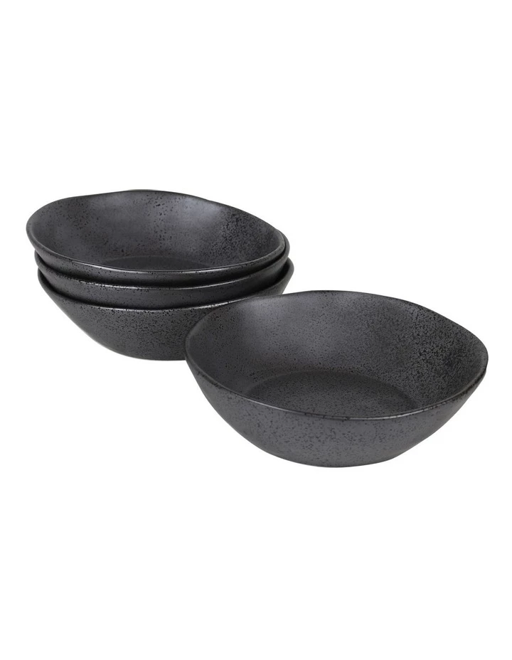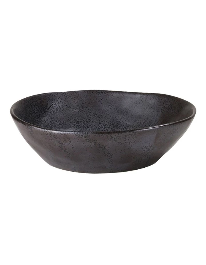 Hospitality grade, high-fired porcelain dinnerware collection in a reactive glaze, Earth is available in black and natural colourway.