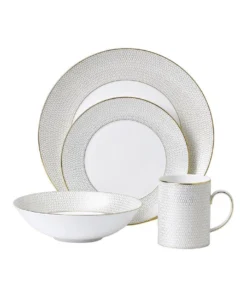Combining luxury and contemporary style, Wedgwood’s Arris collection showcases an intricate hexagonal gold pattern with an ‘Arabian Nights’ design influence on fine bone china including opulent gold rims designed for stylish dining for any entertaining occasion. The 4-piece set with the superior strength and amazing translucency of fine bone china includes a dinner plate (23cm), side plate (20cm), cereal bowl and mug with all pieces designed to fit perfectly within a stylish, contemporary home or to offer as a special gift. The innovative gold pattern makes Arris a luxurious addition to the table top which can also be easily combined with classic white collections for a more relaxed look while still capturing the sophistication that has been synonymous with Wedgwood tableware for 260 years.
