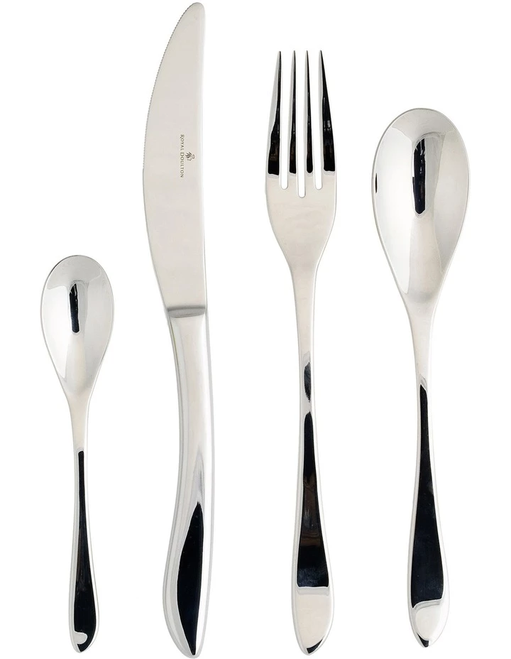 Beautiful and contemporary, the Lucido pattern of tableware is characterised by a smooth, curved design aesthetic and a crisp and elegant stainless steel finish. The result is achingly modern and sophisticated. 56 piece flock-lined gift-boxed set includes: 8 place settings of Dinner Knife, Entree Knife, Dinner Fork, Entree Fork, Soup Spoon, Dessert Spoon and Teaspoon.