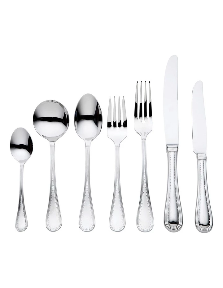Contains: 8 Dinner Knives, 8 Entree Knives, 8 Dinner Forks, 8 Dessert Spoons, 8 Soup Spoons and 8Teaspoons.
