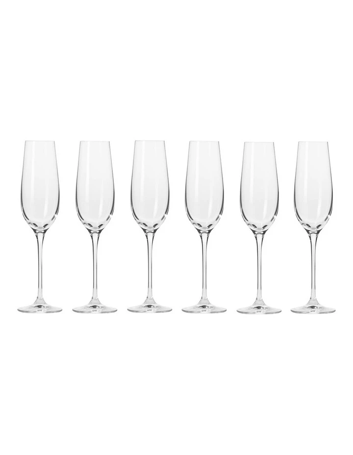 Krosno is renowned for high quality glassware and timeless designs. This gift boxed set of six champagne flutes is an elegant addition to any home. Made in Poland. Dishwasher safe.