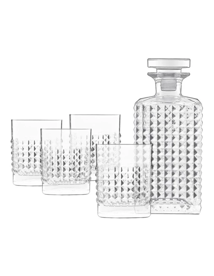 The Mixology Elixir Decanter set features a uniquely textured design and is part of the new Mixology collection, introducing luxury barware items carefully crafted to optimize mixed drink preparation and presentation.
