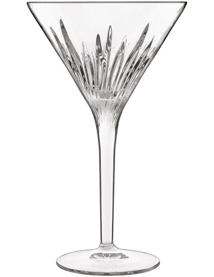 The Mixology Martini glass features a uniquely textured design and is part of the new Mixology collection, introducing luxury barware items carefully crafted to optimize mixed drink preparation and presentation. Mixology was developed by Luigi Bormioli in conjunction with Yuri Glemini, Futuristic Mixologist at Surfers Den in Milan. This collaboration is a perfect combination of new elements, expertise, creativity, and artistic expression, where nothing is left to chance.