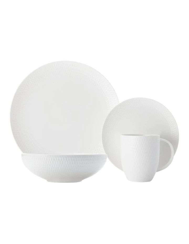 - Contains 4 x dinner plates, 4 x side plates, 4 x coupe bowls and 4 x mugs