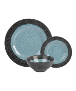Lagoon is a dinner set like no other. Combining two different reactive glazing techniques produces a stunning contrast between the dimpled black rim and the smooth turquoise center. From a color and finish point of view, no two items are the same but when combined with handcrafted style the end result in tableware that is truly unique. All meals presented on Lagoon take on a distinctive new look of elegance and excitement.