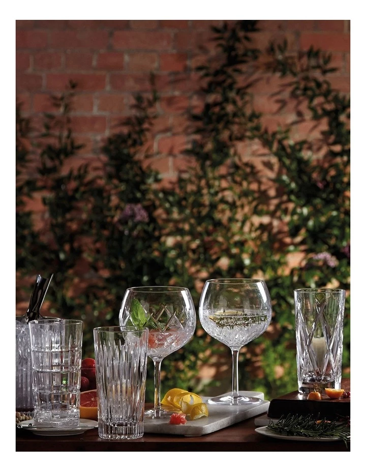 Waterford Gin Journeys has been designed with input from Gin experts to ensure that craft gins and gin cocktails can be fully enjoyed. The collection features shapes designed for the ultimate enjoyment of gin: a balloon glass with short stem for high volume alcohol gin (greater than 39% alcohol by volume – abv) and a slim highball for low alcohol gin (less than 39% abv).