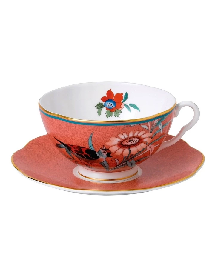 The Paeonia Blush Teacup & Saucer Coral is a bold and enticing piece just waiting for your favourite infusion. Taking inspiration from the Orient, this piece features a beautiful coral backdrop detailed with peonies and Oriental-style accents. The Paeonia Blush collection is an eclectic mix of gifts and teaware, all forming a celebration of the peony. Paeonia is the botannical name for the Peony. A historic flower dating back thousands of years, the peony is known as the flower of riches and honour. With its lushous and rounded blooms, peonies have come to represent romance and prosperity, and are widely regarded as an omen of good fortune and happy marriage. The original artwork for this collection derives from the first series of pattern books, dating back to the 18th Century. Designed in the Chinoiserie style, popularised in the eighteenth and nineteenth century by an obsession with the Orient , the style imagines the region to be a realm of giant flowers, tiny trees, temples, pagodas, extra-ordinary birds and flocks of outstanding butterflies. For Europeans of the time, the style juxtaposes the new and exotic, with a rich culture thousands of years in the making. Discover the whole Wedgwood collection for afternoon tea, featuring teacups and saucers, teapots, cake stands and even ice cream bowls.
