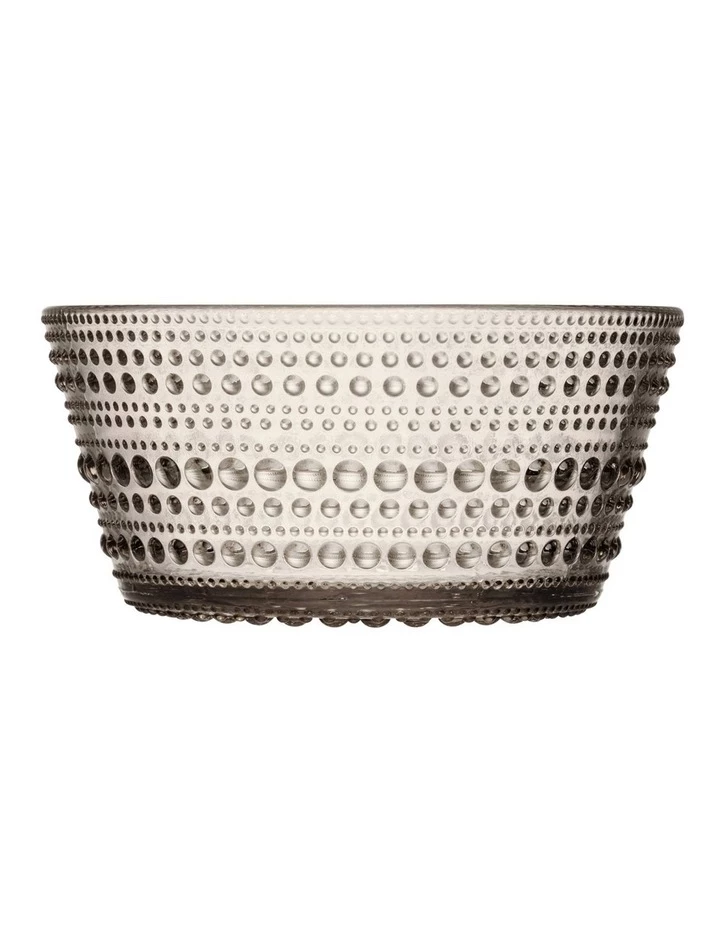 Finnish design pioneer Oiva Toikka was searching for a way to hide joint marks in glass when he invented the groundbreaking Kastehelmi design. Inspired by nature, Kastehelmi (Finnish for "dewdrop") features rings of raised glass droplets that resemble strings of dewdrops glistening under the morning sun. Kastehelmi plays with light, bringing out the true reflective beauty of the glass. Iittala’s beloved Kastehelmi collection offers a wide range of versatile pieces that are both functional and decorative. The delicate yet durable Kastehelmi bowl is perfect for a hearty breakfast, snacks, sides and displaying candy. New linen colour adds fresh elegance to any table setting. Collect a set. A lovely gift.
