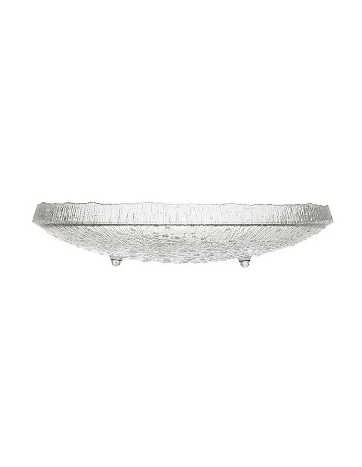 Inspired by the melting ice in Lapland, Wirkkala originally created the surface in the 1960s after carving into a graphic mould. An exclusive design reflecting the thousands of hours spent perfecting the glass-blowing technique required to produce the effect. The patterns gradually change as the glass burns the surface of the wooden moulds.
