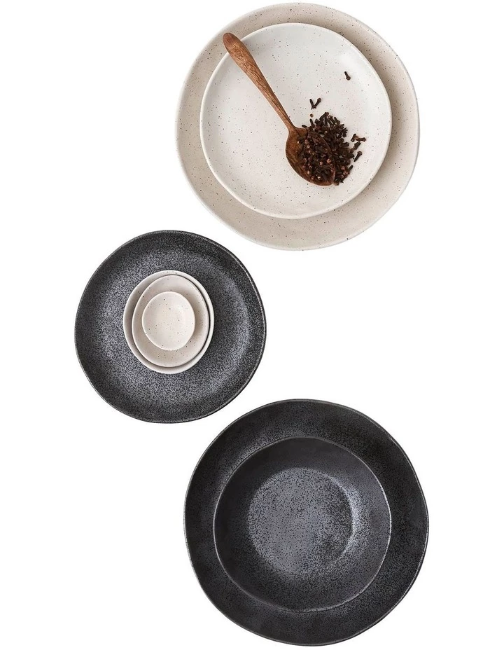 Hospitality grade, high-fired porcelain dinnerware collection in a reactive glaze, Earth is available in black and natural colourway.
