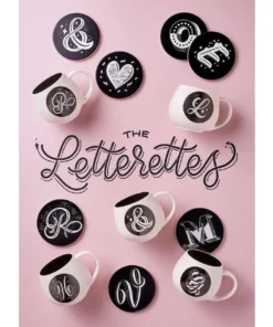 Promo ๐ Maxwell & Williams The Letterettes Ceramic 10.5cm J Gift Boxed Round Coaster Black โจ