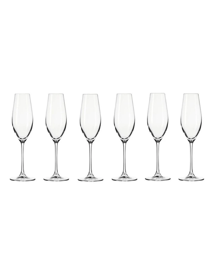 Myer exclusive. This gift boxed set of six Splendour champagne flutes is an elegant addition to any home. Made in Poland. Dishwasher safe.